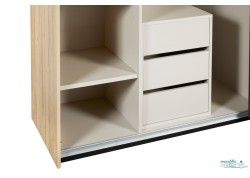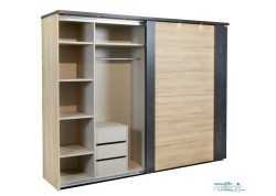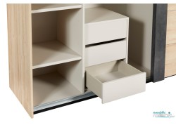 Elle mesure 217 ou 280 x 221 x 62 cm et dispose de deux portes coulissantes avec amortisseurs.