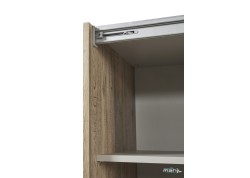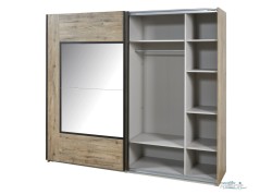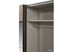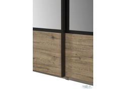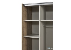 L'armoire Olivia dispose de deux portes coulissantes avec amortisseurs et de miroirs sur les portes. Nombreux espaces de rangements inclus: étagères et penderies.