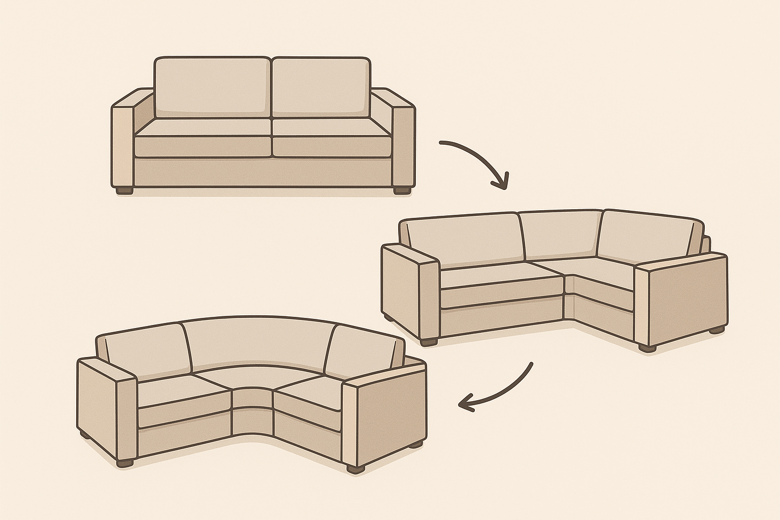Découvrez notre canapé panoramique Pauno en microfibre, alliant confort et design ! Avec ses dimensions de 160x345x230 cm il offre un espace idéal pour vos moments de détente. Disponible avec un grand choix de tissu - microfibre - cuir. Ce canapé est modulable (nombreuses compositions).