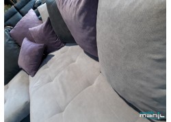 Magnifique canapé d'angle pas cher en tissu bicolore avec tous ses coussins à un prix de folie !