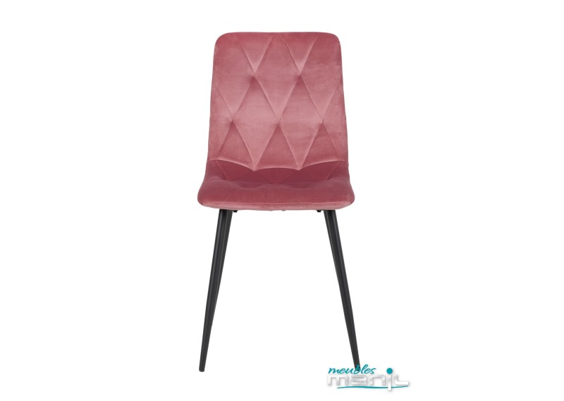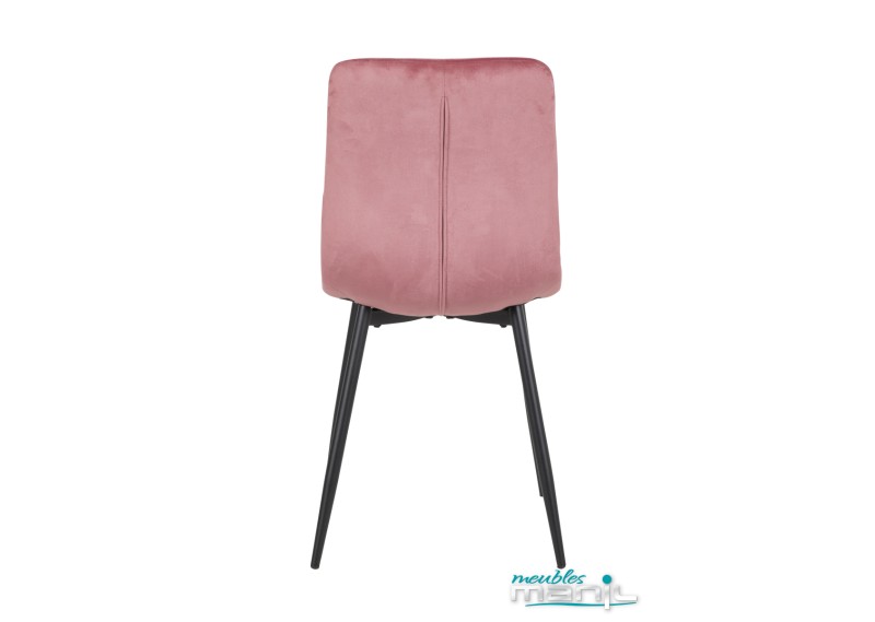 Une chaise toute en simplicité et élégance, en velours rose.