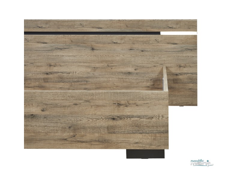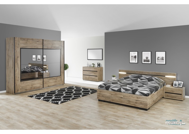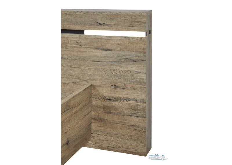 Lit Olivia et ses tonalités naturelles et chaleureuses. Eclairage intégré à la tête de lit.